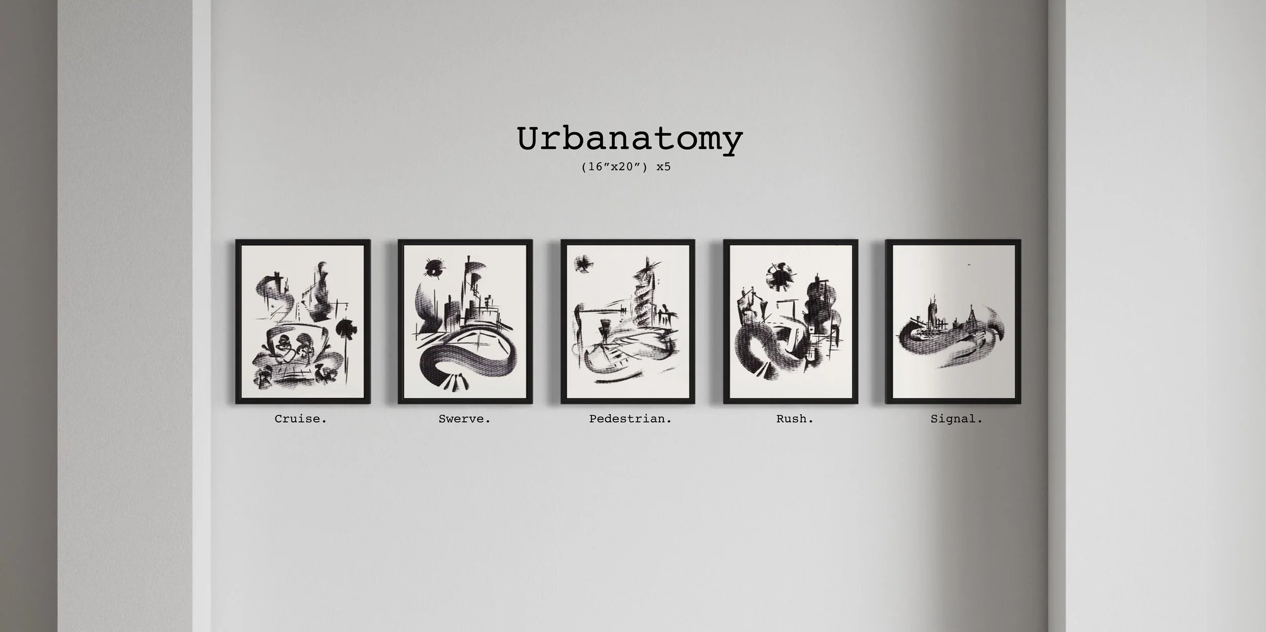 Urbanatomy Urbanatomy explores the life and motion of urban environments through a unique minimalist style & design. Cruise. Swerve. Pedestrian. Rush. AM-FM. Caligraffiti Traffic